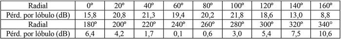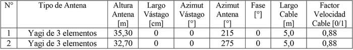 - Arreglo de antenas de acuerdo a la siguiente tabla: