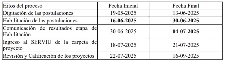 5. Los plazos correspondientes a las fases del proceso de postulación, de acuerdo con el artículo 27 del DS Nº 27 (V. y U.), de 2016, para este llamado serán los siguientesResolución 1350 EXENTA,