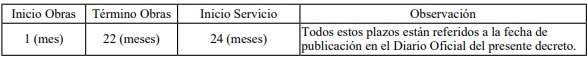 3. Los plazos máximos para inicio de obras, términos de obras e inicio del servicio serán los siguientes: