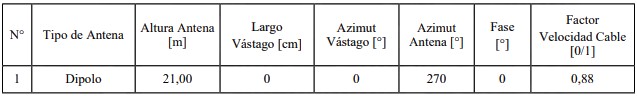 - Diagrama de radiación horizontal de acuerdo a la siguiente tabla: