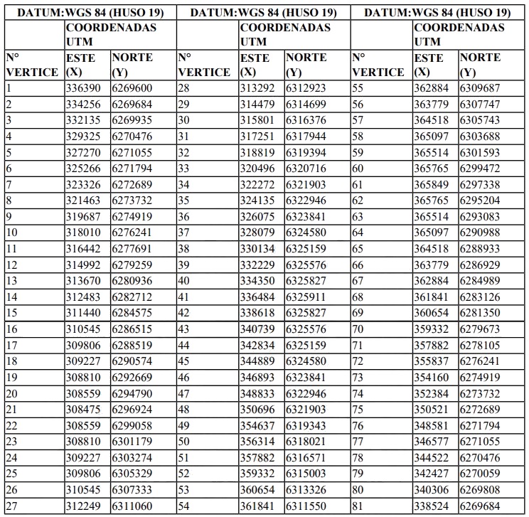 a) A partir del 7 de mayo de 2025, como área cuarentenada para el mercado de China el polígono de 81 vértices, determinado por las siguientes coordenadas UTM, señaladas a continuación: