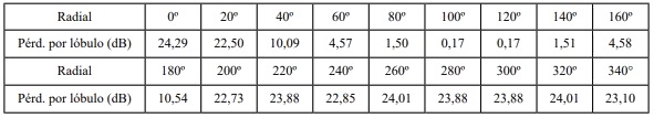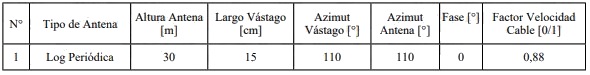 - Arreglo de antena de acuerdo a la siguiente tabla:
