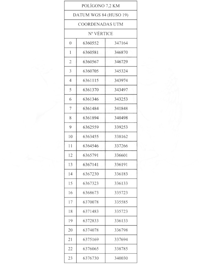 El nuevo polígono incluye 51 vértices, determinado por las siguientes coordenadas UTM: