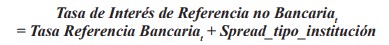 Spread_tipo_institución : es un spread por sobre la Tasa de Referencia Bancaria que se obtiene mediante la diferencia entre las tasas del tipo de institución y las tasas bancarias.
