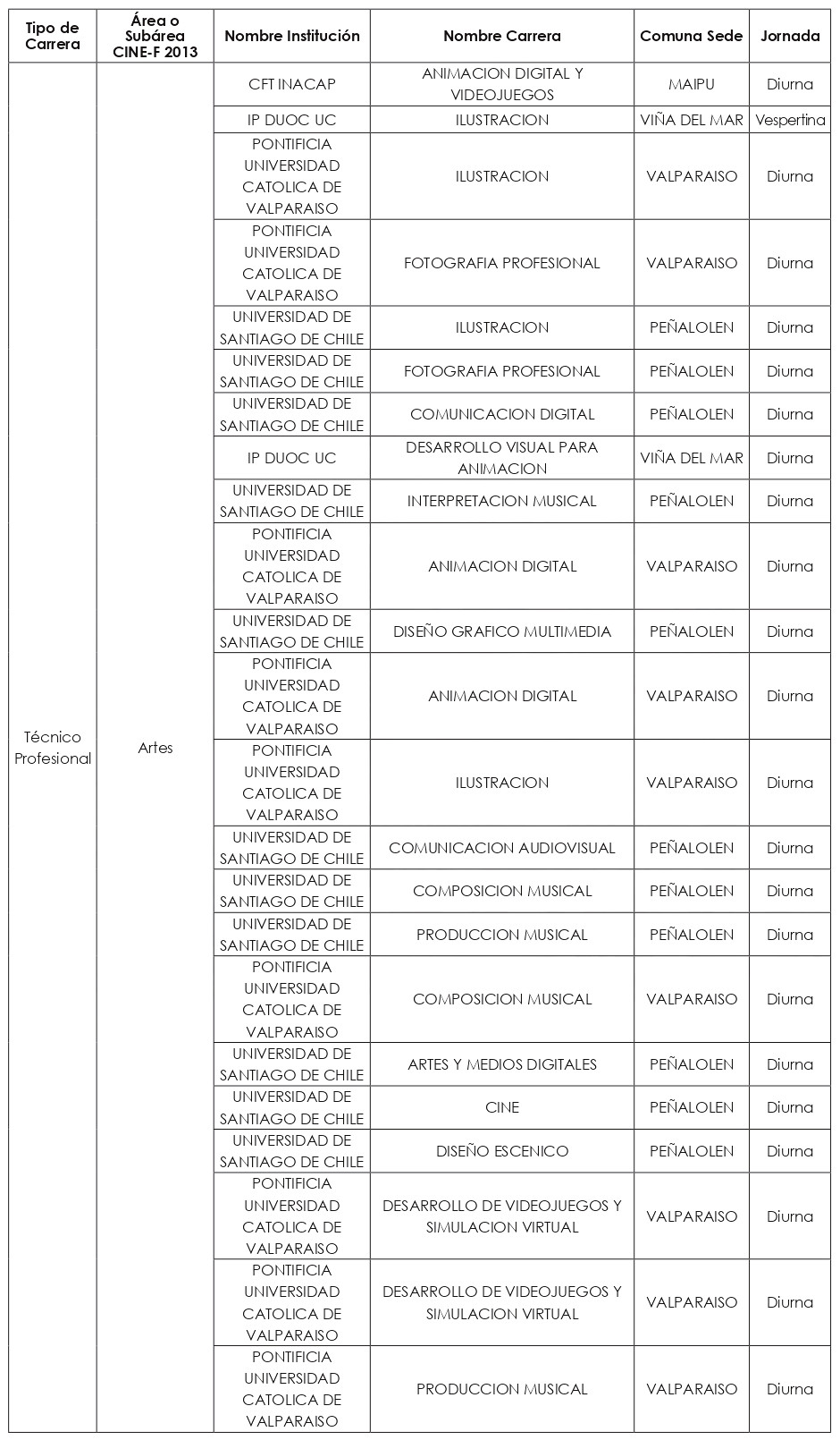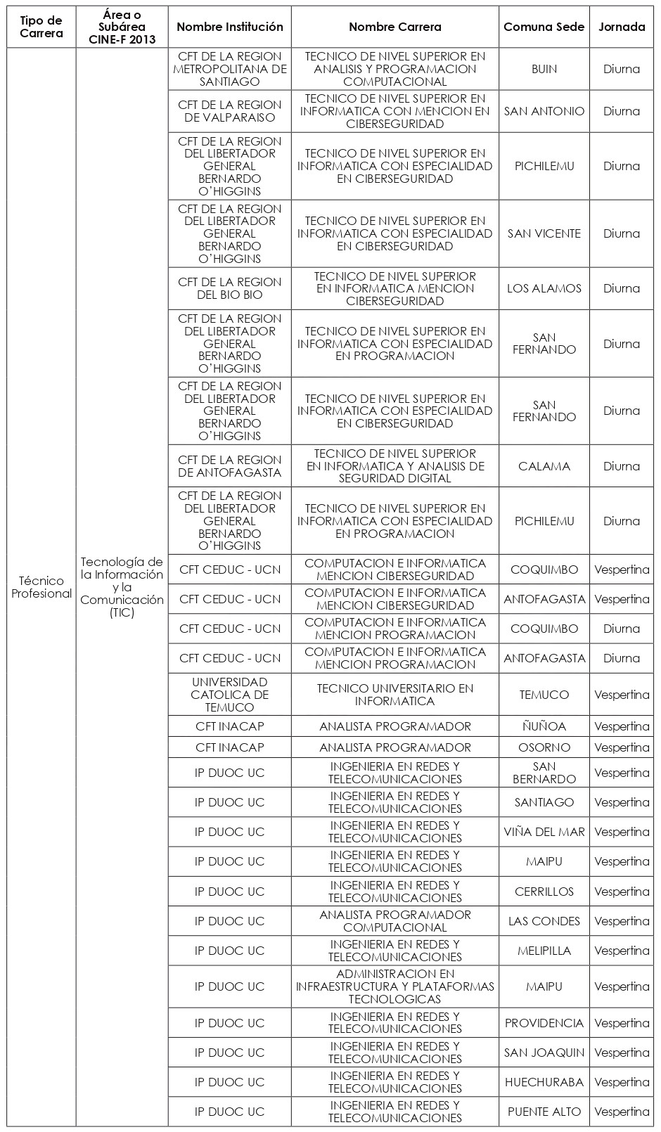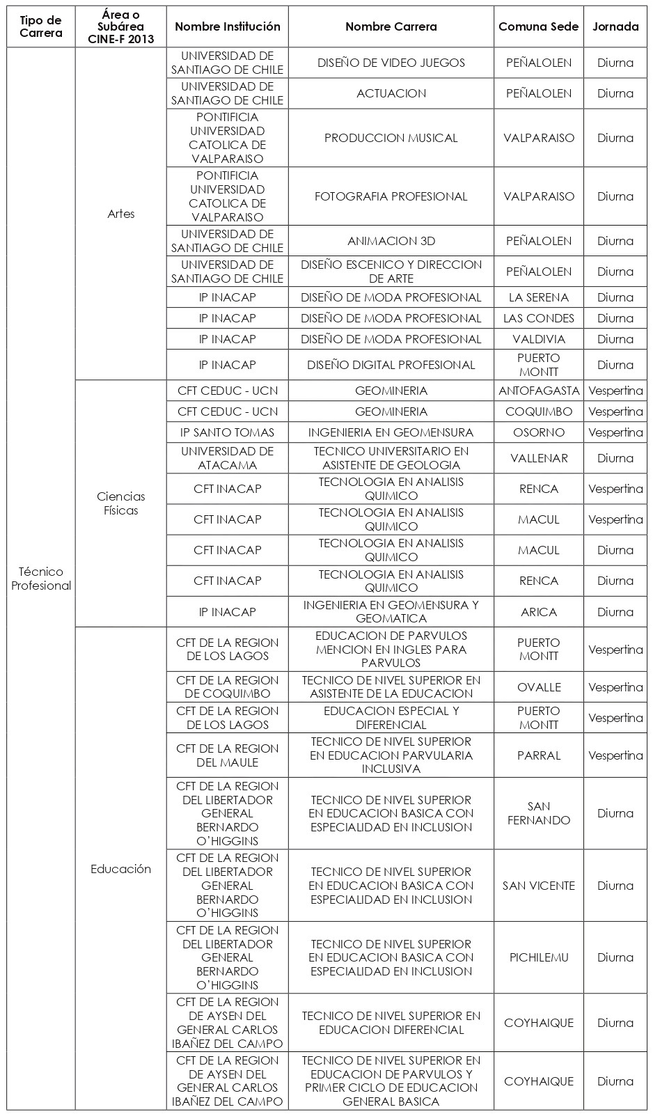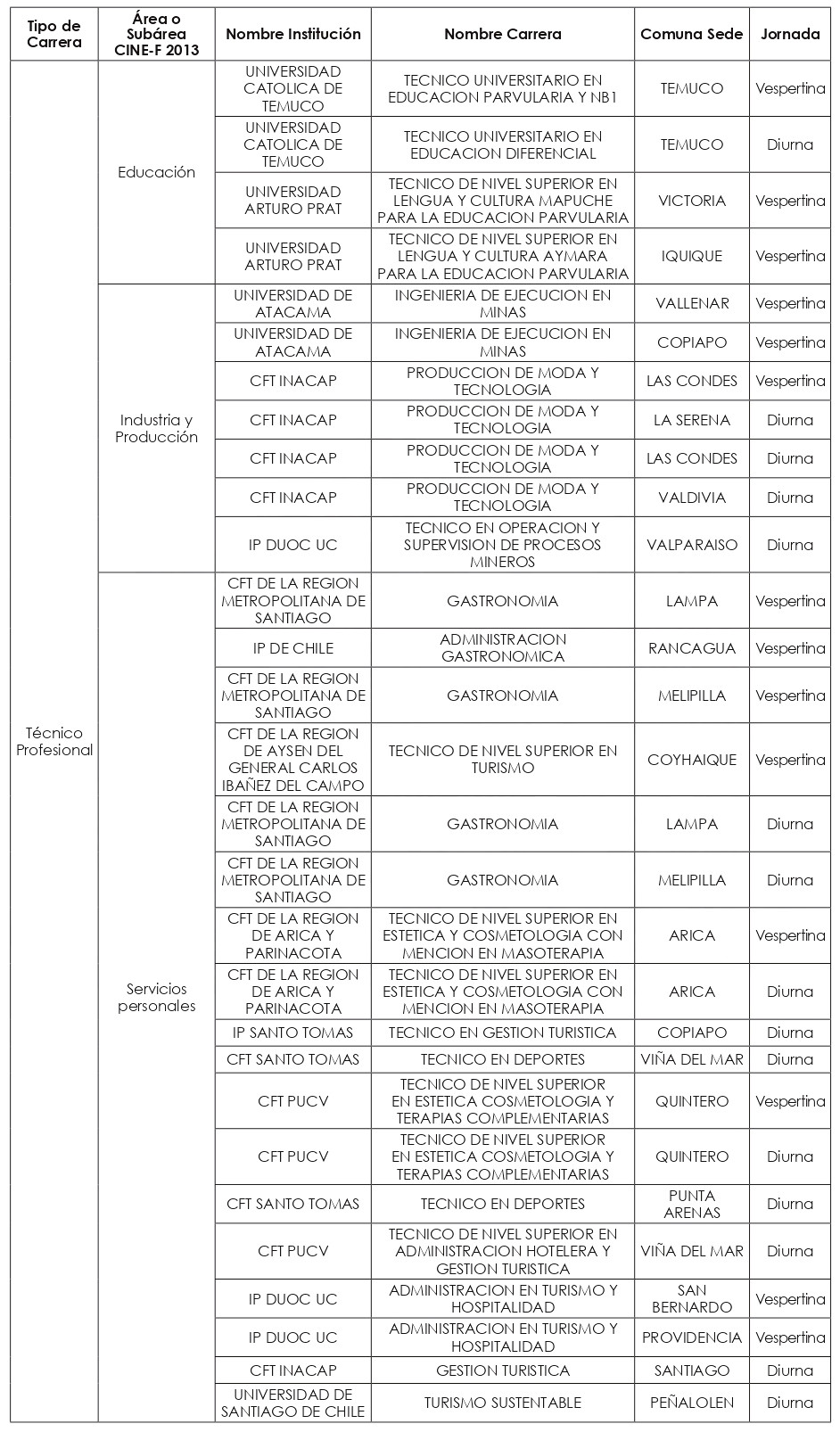 Las nuevas carreras a incorporar a partir del año académico 2025, se clasificaron en quince "macrogrupos", a saber: carreras Profesionales de las subáreas CINE-F 2013 de: "Ciencias Físicas"; "Ciencias Sociales y del Comportamiento"; "Educación"; "Educación Comercial y Administración"; "Industria y Producción"; "Matemáticas y Estadísticas"; y del área CINE-F 2013 de "Servicios"; y carreras Técnico-Profesionales de las subáreas de: "Agricultura"; "Arquitectura y Construcción"; "Artes"; "Ciencias Físicas"; "Educación"; "Industria y Producción"; "Servicios personales"; y "Tecnología de la Información y Comunicación (TIC)".