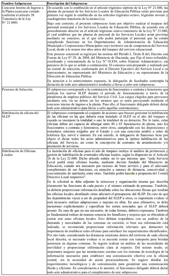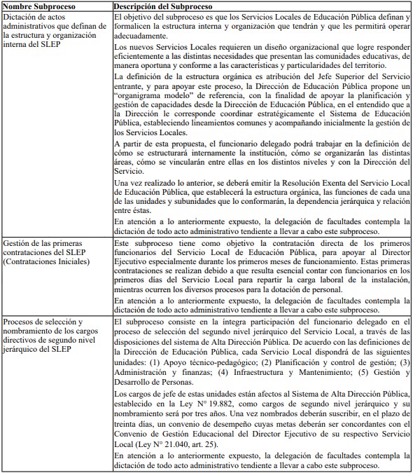 2. Que, el inciso 4º del artículo trigésimo quinto transitorio de la ley Nº 21.040 señala: "Si después de cuarenta y cinco días hábiles desde la entrada en funcionamiento de alguno de los Servicios Locales de Educación Pública su Director Ejecutivo no hubiere asumido el cargo, el Director de Educación Pública podrá ejercer las funciones y dictar los actos necesarios para la implementación del Servicio Local y para el traspaso del servicio educacional que sean de competencia del Director Ejecutivo, en especial aquellos establecidos en las disposiciones transitorias. El Director de Educación Pública podrá delegar esta facultad en funcionarios de su dependencia, lo que no modificará la responsabilidad de dicha autoridad, sin perjuicio de la que pudiera afectar al delegado por negligencia en el ejercicio de la facultad delegada. Las atribuciones establecidas en virtud de este inciso sólo podrán ser ejercidas hasta que asuma sus funciones el Director Ejecutivo del Servicio Local respectivo";
