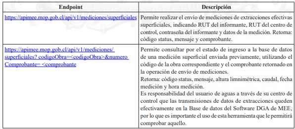Ejemplo endpoint https://apimee.mop.gob.cl/api/v1/mediciones/superficiales/flujometro