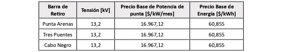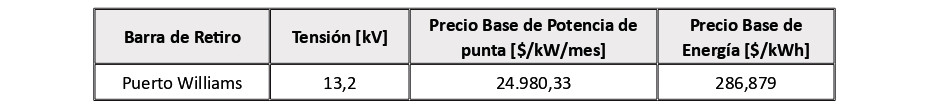 A continuación, se detallan los precios de nudo de energía y potencia de punta que se aplicarán a los suministros servidos en las barras de retiro para el nivel de tensión que se indica: