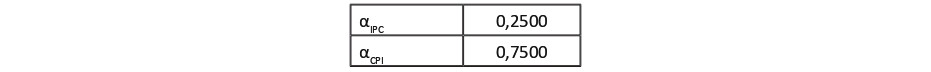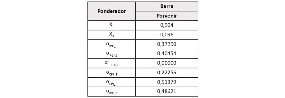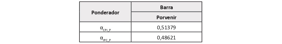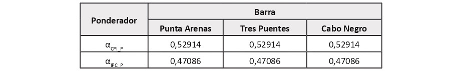 Los ponderadores de cada uno de los índices que componen la fórmula de indexación del precio de nudo de la potencia, son los que a continuación se indican:
