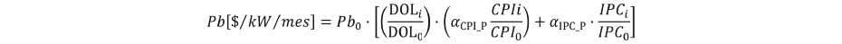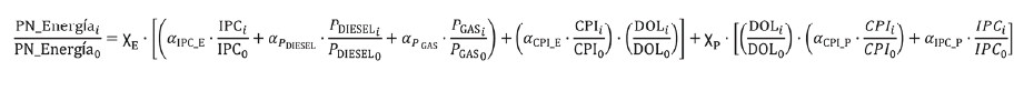 La fórmula de indexación del precio de nudo de la energía, así como la fuente y convención de cálculo de los índices se presenta a continuación:
