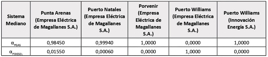 En caso de presentarse situaciones de restricción de gas natural en los Sistemas Medianos, será necesario aplicar un factor de corrección para el cálculo del precio de la energía a través del parámetro αrg que multiplique el precio de la energía base. Este parámetro será calculado en forma individual para cada uno de los Sistemas Medianos, y será comunicado por la Comisión una vez que sea instruido a ello por el Ministerio de Energía. Asimismo, la Comisión comunicará los nuevos valores resultantes de los costos variables medios totales de cada una de las empresas que operen las instalaciones de generación, y que serán aplicables durante el periodo de vigencia del factor αrg.