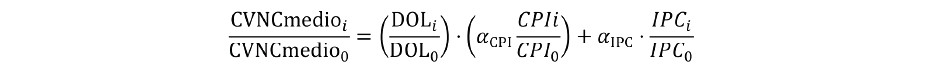 DOLi: Valor promedio del tipo de cambio observado para el dólar de los Estados Unidos de América, publicado por el Banco Central de Chile, correspondiente al segundo mes anterior a aquel mes en que se aplique la indexación en $/US$.