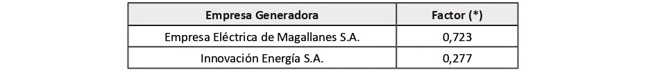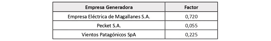 El factor de costos de inversión y administración de cada empresa generadora, que corresponde a la proporción que le resulta asignable a cada empresa de generación respecto del total de costos actualizados de inversiones en instalaciones de generación e infraestructura asociada al segmento de generación y de los costos de administración considerados en la determinación de la tarifa y que no se encuentren contemplados dentro de los costos variables medios, corresponden a los que se detallan a continuación:
