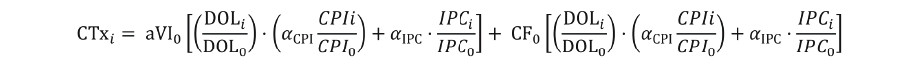 Asimismo, la fórmula de indexación del costo variable no combustible medio, así como la fuente y convención de cálculo de los índices se presenta a continuación: