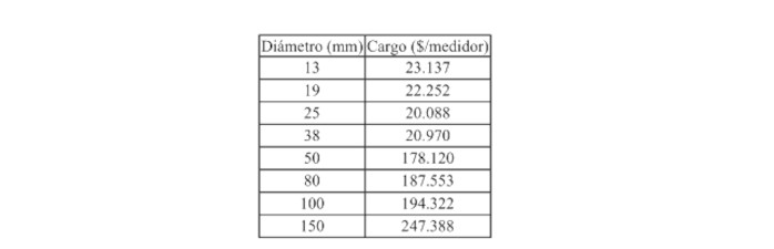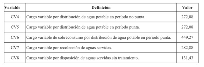 Si el prestador realiza el tratamiento de aguas servidas, el cargo CV8 se incrementará en 594,10 pesos por metro cúbico.