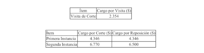 El prestador podrá cobrar por concepto de corte y reposición del suministro a usuarios morosos los siguientes cargos en las instancias que se indican: