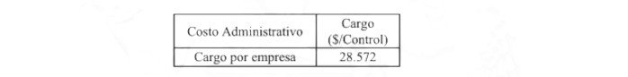 Los valores a cobrar serán: Cargo * IN12, de acuerdo a las siguientes tablas: