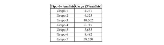 El valor por cada control directo de RILES será igual a la suma de los valores asociados a los conceptos de cantidad de horas de muestreo, tipos y cantidad de análisis efectuados y costo administrativo que se señalan más adelante. Los tipos de análisis a efectuar estarán en función de la actividad económica y al CIIU (Clasificación Industrial Internacional Uniforme) de la misma.