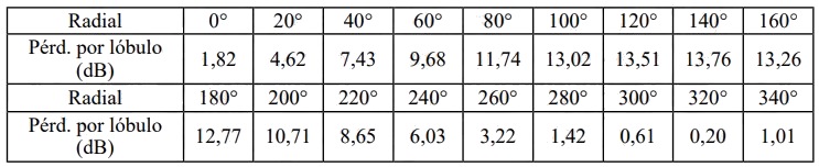 - Diagrama de radiación horizontal de acuerdo a la siguiente tabla: