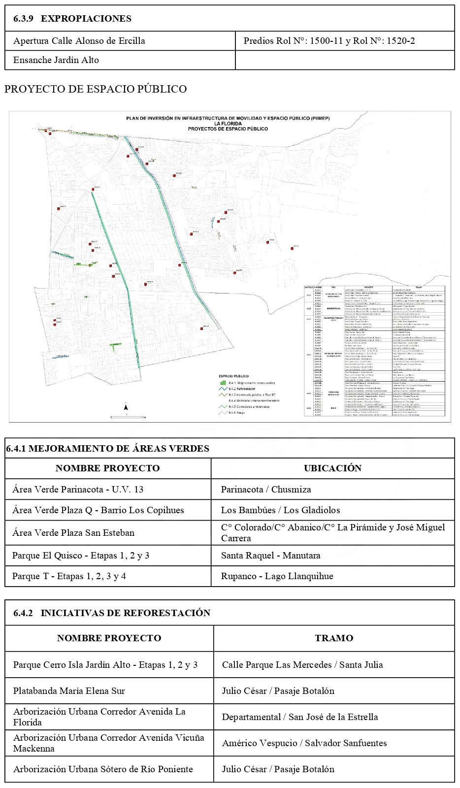 iii) Plano proyectos de espacio público.