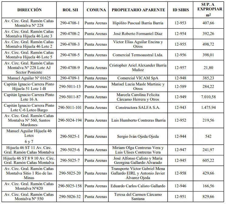 1. Que mediante el Oficio citado en el visto e), el Director del Serviu de la Región de Magallanes y la Antártica Chilena, solicita a esta Secretaría de Estado, la dictación del Decreto que apruebe el programa de expropiación de 16 inmuebles de la citada Región, ubicado en la comuna de Punta Arenas; con la finalidad de desarrollar el proyecto denominado "Construcción Avda. Circunvalación Tramo Pedro Borquez-Gral. del Canto, Punta Arenas", en la comuna de Punta Arenas, iniciativa ingresada al Banco Integrado de Proyectos del Ministerio de Desarrollo Social, bajo el Nº 40047388-0, por una superficie total a expropiar de 13.909,05 metros cuadrados.