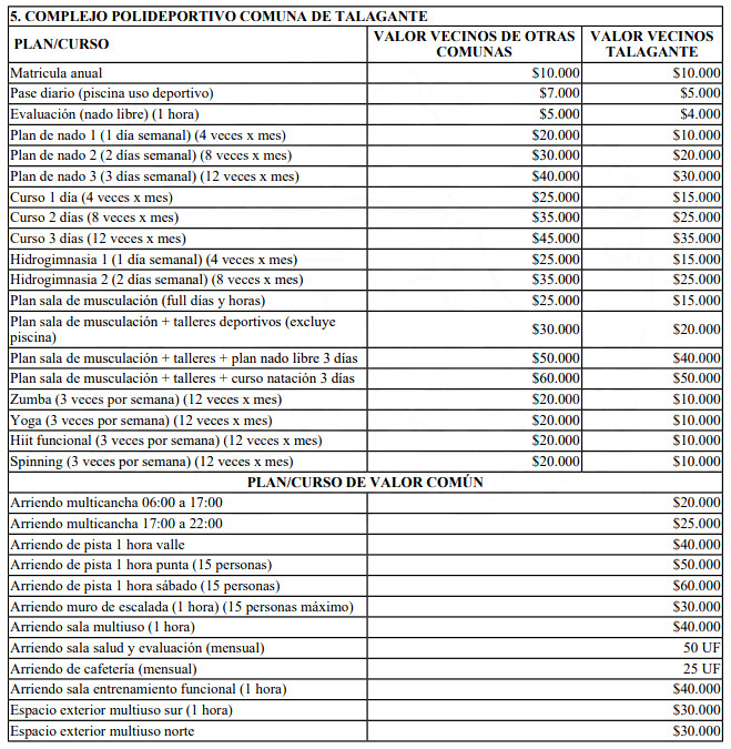 Por decreto exento Nº 2.334 de fecha 30 de junio de 2025, se aprueba acuerdo Nº 70 del Honorable Concejo Municipal de sesión extraordinaria de fecha 25 de junio de 2025, en que aprueba modificación a la Ordenanza Municipal Nº 1 de fecha 3 de enero de 2023, incorporando al artículo 19 del Título X sobre "Derechos municipales relativos a recintos deportivos y recreativos", un numeral 5 del siguiente tenor: