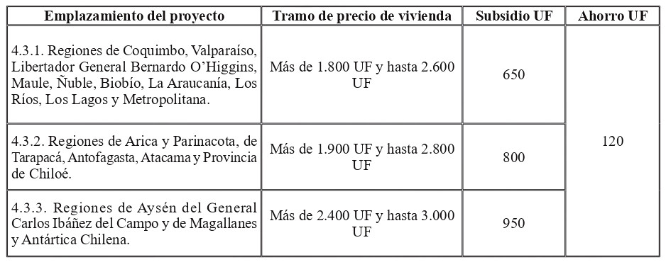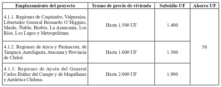 Los montos de subsidio y ahorro mínimo, según el tramo de precio de vivienda, serán los siguientes: