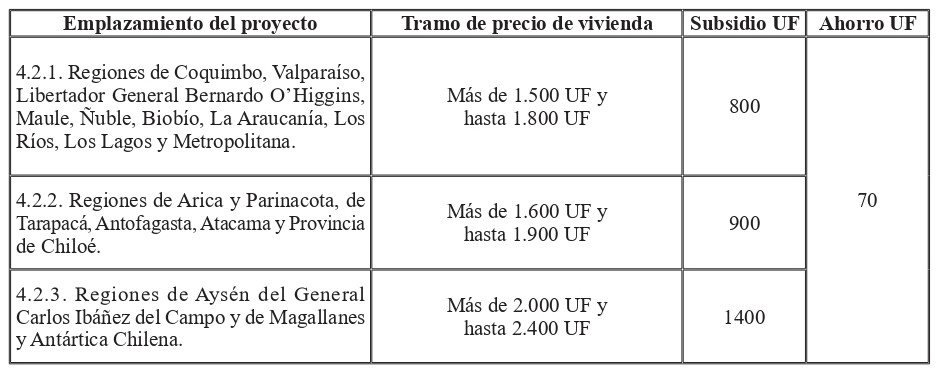 Los montos de subsidios de las tablas precedentes, que incluyen el subsidio adicional de 200 UF establecido en la letra d) del artículo 64 y letra f) del artículo 67 del DS N° 1 (V. y U.), de 2011.
