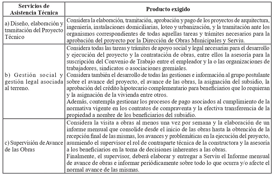 El responsable de contratar la prestación de los servicios de asistencia técnica y de suscribir el contrato de construcción será la o las organizaciones o agrupaciones de trabajadores.