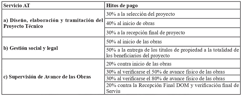 7.4. Para proceder al pago de los servicios de asistencia técnica, se requiere que la o las organizaciones de trabajadores, o agrupación de trabajadores, según corresponda, entregue al Serviu un mandato que permita proceder al pago de los honorarios de quienes desarrollaron dichos servicios. Para ello, la o las organizaciones de trabajadores, o agrupación de trabajadores, deberá identificar al profesional y/o la entidad prestadora del servicio, debiendo el Serviu verificar el cumplimiento efectivo y la calidad de la labor desarrollada.