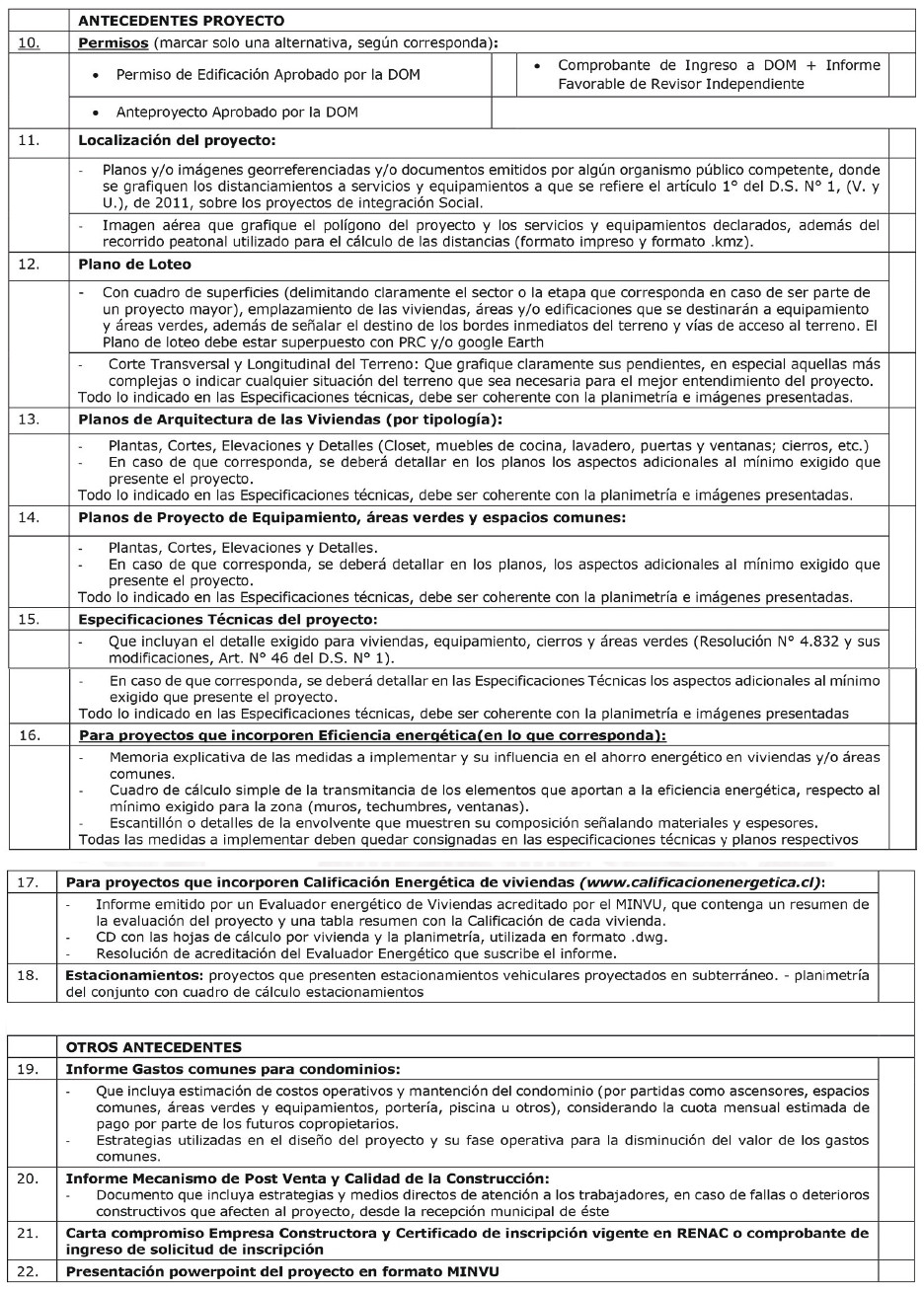 Nota: En la postulación se podrán presentar antecedentes adicionales a los señalados en el listado, que considere necesarios para el mejor entendimiento del proyecto.