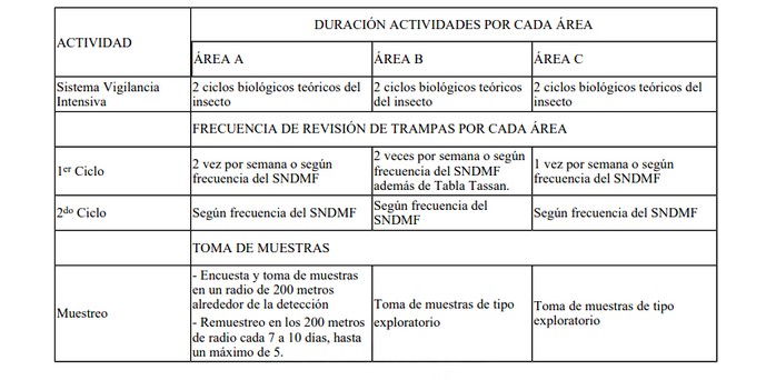4. Dispóngase la ejecución de las siguientes medidas fitosanitarias en el área vigilada: