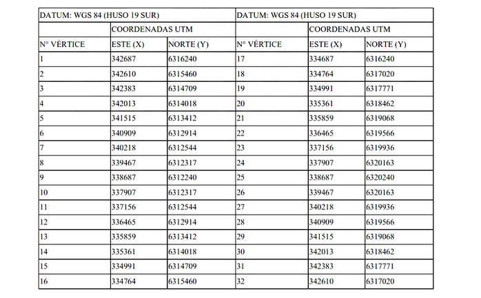 a) A partir de fecha 5 de agosto de 2025, en el área que conformará la emergencia de vigilancia intensiva, corresponderá al polígono de 32 vértices, determinado por las siguientes coordenadas UTM, señaladas a continuación: