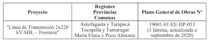 OTORGA A SOL DEL LOA SpA CONCESIÓN ELÉCTRICA DEFINITIVA PARA ESTABLECER LAS INSTALACIONES CORRESPONDIENTES AL PROYECTO DENOMINADO "LÍNEA DE TRANSMISIÓN 2X220 KV SDL – FRONTERA", EN LAS REGIONES DE ANTOFAGASTA Y TARAPACÁ, PROVINCIAS DE TOCOPILLA Y TAMARUGAL, COMUNAS DE MARÍA ELENA Y POZO ALMONTE