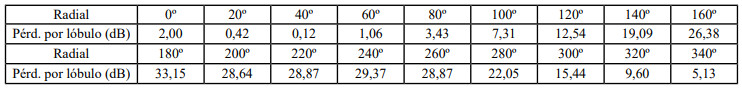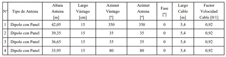- Arreglo de antenas de acuerdo a la siguiente tabla: