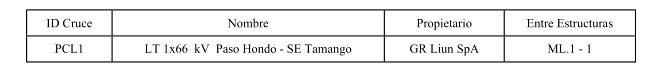 En su recorrido, las instalaciones del Proyecto presentan cruces con las siguientes líneas eléctricas, obras e instalaciones existentes que se indican a continuación: