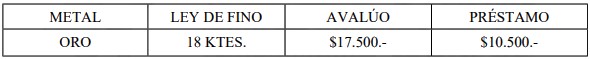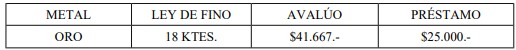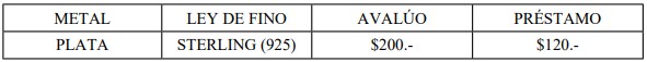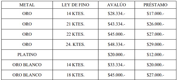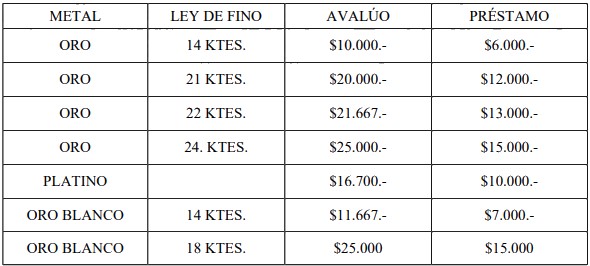 1. Fíjase nuevo avalúo por el gramo de metales nobles, utilizado por las Unidades de Crédito en el cálculo de los préstamos con garantía prendaria del rubro alhajas, conforme a las siguientes condiciones: