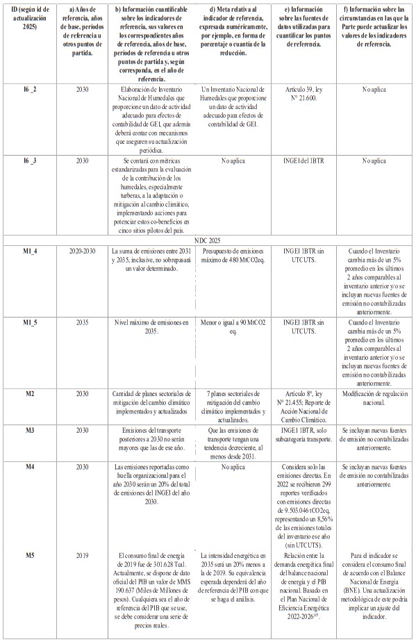 29. Que, el artículo 7°, letra e), de la ley 21.455, dispone que la NDC debe contener la información necesaria para dar cumplimiento a los requerimientos de claridad, transparencia y entendimiento de los acuerdos internacionales suscritos por Chile. En este sentido, la Contribución Nacional Determinada incluye compromisos una sección destinada a facilitar la claridad, transparencia y la comprensión de la Contribución Nacional Determinada, proveyendo información cuantificable sobre el punto de referencia, de conformidad con la Decisión de la Conferencia de las Partes 1/CP.21, párrafo 27.
