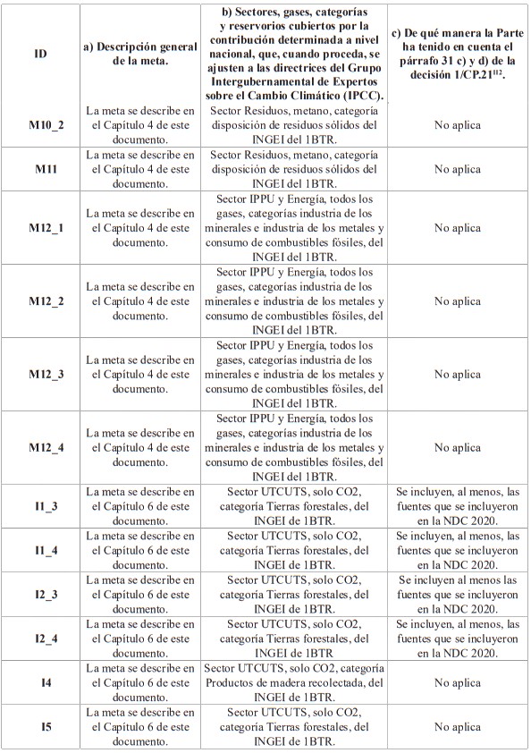Por su parte, las metas ajustadas de la NDC 2020 consideran también el inventario del Primer Informe Bienal de Transparencia, pero dejando fuera las fuentes de emisión que no se contabilizaban en el Inventario del 3er Informe Bienal de Actualización, con el que se definió la meta de 2020. Esta fuente corresponde únicamente a la de residuos industriales, contabilizado en 5.A. la disposición de residuos sólidos.