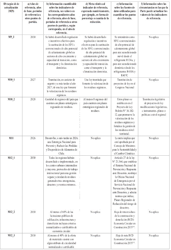 La NDC de Chile recoge el llamado a las partes de adoptar medidas enfocadas en la economía circular mediante los compromisos M10, M11 y M12, acelerando además la reducción de forzantes climáticos de vida corta -en particular el carbono negro, metano y HFCs con las metas M7, M8 y M9. Por otro lado, Chile considera al sector UTCUTS por separado, con metas específicas considerando su importancia tanto para la mitigación como para la adaptación y la conservación de la biodiversidad. Adicionalmente, se aborda la conservación de ecosistemas para evitar emisiones de reservorios, lo que se complementa con la importancia de estos pa ra la seguridad hídrica, la biodiversidad, la salud, seguridad alimentaria y el desarrollo con un foco particular en preservar y restaurar los ecosistemas costeros y oceánicos reflejado en los compromisos I10, I11 e I12.