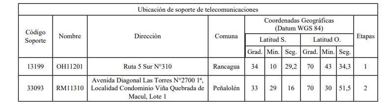 1. Autorízase a la concesionaria para instalar, operar y explotar dos (2) Estaciones Base, en nueva Infraestructura de Telecomunicaciones, según se indica a continuación: