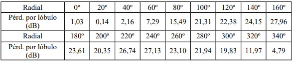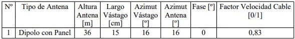 - Arreglo de antena de acuerdo a la siguiente tabla: