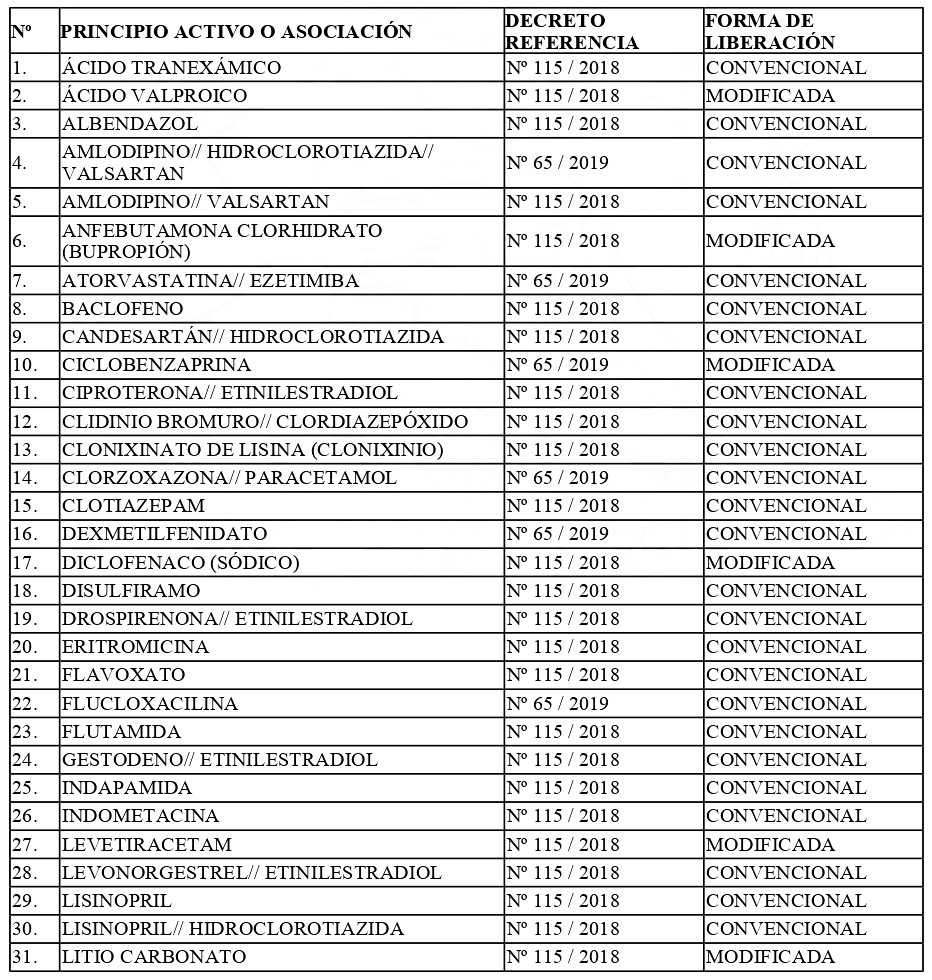 "Otórgase plazo hasta el 30 de septiembre de 2027, para que a todo titular de registro sanitario de un producto farmacéutico que reúna alguna de las características descritas en el Punto 4.2. de la Norma Técnica Nº 131, "Norma que define los criterios destinados a establecer la equivalencia terapéutica en productos farmacéuticos en Chile", aprobada mediante el decreto exento Nº 27, de fecha 18 de enero de 2012, del Ministerio de Salud, presente ante el Instituto de Salud Pública de Chile los antecedentes para demostrar su equivalencia terapéutica. El mismo plazo señalado precedentemente aplicará para productos farmacéuticos registrados por los principios activos o sus asociaciones que se indican en el listado incorporado más abajo, que deban cumplir con la señalada demostración y se presenten como formulaciones masticables, bucodispersables, dispersables, láminas bucodispersables o cualquier otra forma farmacéutica de administración oral, que difiera de aquella en la que se presenta el respectivo producto de referencia establecido para la realización de los estudios de equivalencia terapéutica.