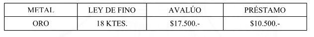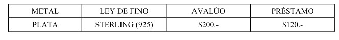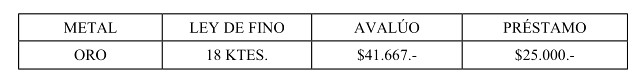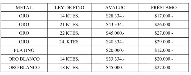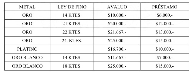 1. Fíjese nuevo avalúo por el gramo de metales nobles, utilizado por las Unidades de Crédito en el cálculo de los préstamos con garantía prendaria del rubro alhajas conforme a la siguiente tabla y las siguientes condiciones: