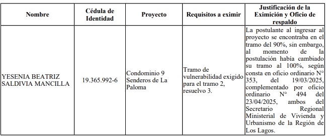 3. Exímase a las personas que se individualizan a continuación, del cumplimiento de las siguientes condiciones y/o requisitos dispuestos en la resolución exenta Nº 466 (V. y U.), de 2024: