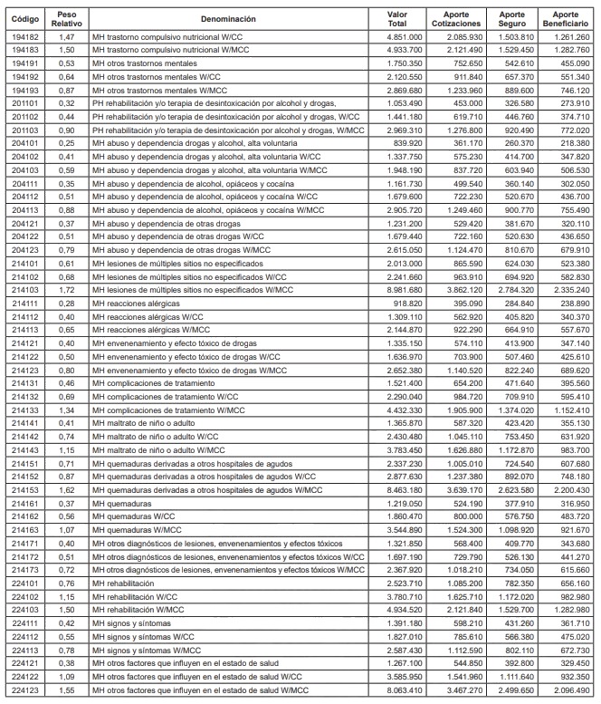 "Artículo 5. Los precios base GRD y puntos de corte establecidos en el Arancel MCC son los siguientes: