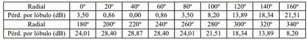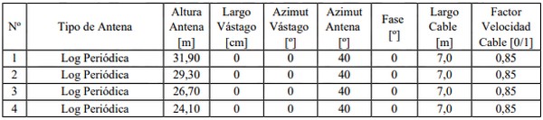 - Arreglo de antenas de acuerdo a la siguiente tabla: