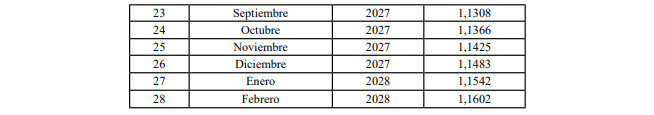 2º.- Fíjanse los coeficientes que a continuación se indican, según mes de vencimiento, para la proyección de intereses de las boletas bancarias de garantía a que se refiere el DS Nº 40 (V. y U), de 2004, solo respecto de los llamados y actuaciones efectuados conforme a sus disposiciones, las que continuarán aplicándose hasta su total extinción, de acuerdo con lo dispuesto en los incisos primero y segundo del artículo 75 del DS Nº 1 (V. y U.), de 2011, que lo derogó; el DS Nº 174 (V. y U.), de 2005; el DS Nº 1 (V. y U.), de 2011; el DS Nº 49 (V. y U.), de 2011; el DS Nº 255 (V. y U.), de 2006; el DS Nº 4 (V. y U.), de 2009; el DS Nº 145 (V. y U.), de 2007, sólo respecto de los llamados y actuaciones efectuados conforme a sus disposiciones, las que continuarán aplicándose hasta su total extinción, de acuerdo a lo establecido en el artículo 2º transitorio del DS Nº 3 (V. y U.), de 2010, que lo derogó; el DS Nº 62 (V. y U.), de 1984; el DS Nº 140 (V. y U.), de 1990, en sus artículos 16 y 19; el DS Nº 135 (V. y U.), de 1986, en su artículo 9º; sea que dichas boletas de garantía estuvieren expresadas en Unidades de Fomento o en pesos, moneda nacional: