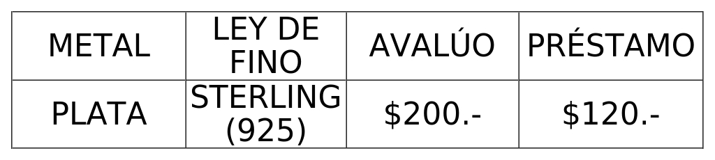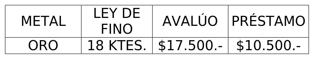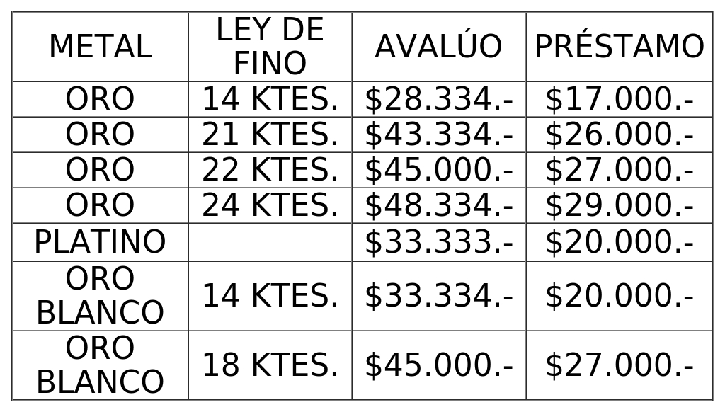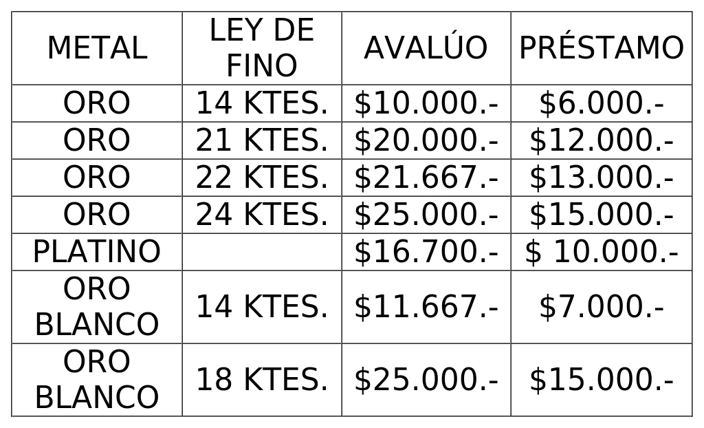 1. Fíjese nuevo avalúo por el gramo de metales nobles, utilizado por las Unidades de Crédito en el cálculo de los préstamos con garantía prendaria del rubro alhajas conforme a la siguiente tabla y las siguientes condiciones: