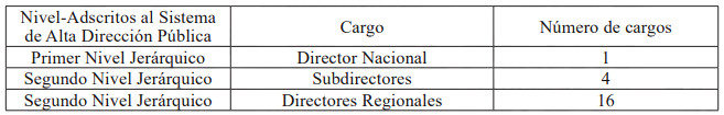Los cargos de Directores y Directoras Regionales estarán adscritos al segundo nivel jerárquico del Sistema de Alta Dirección Pública de la ley N° 19.882.